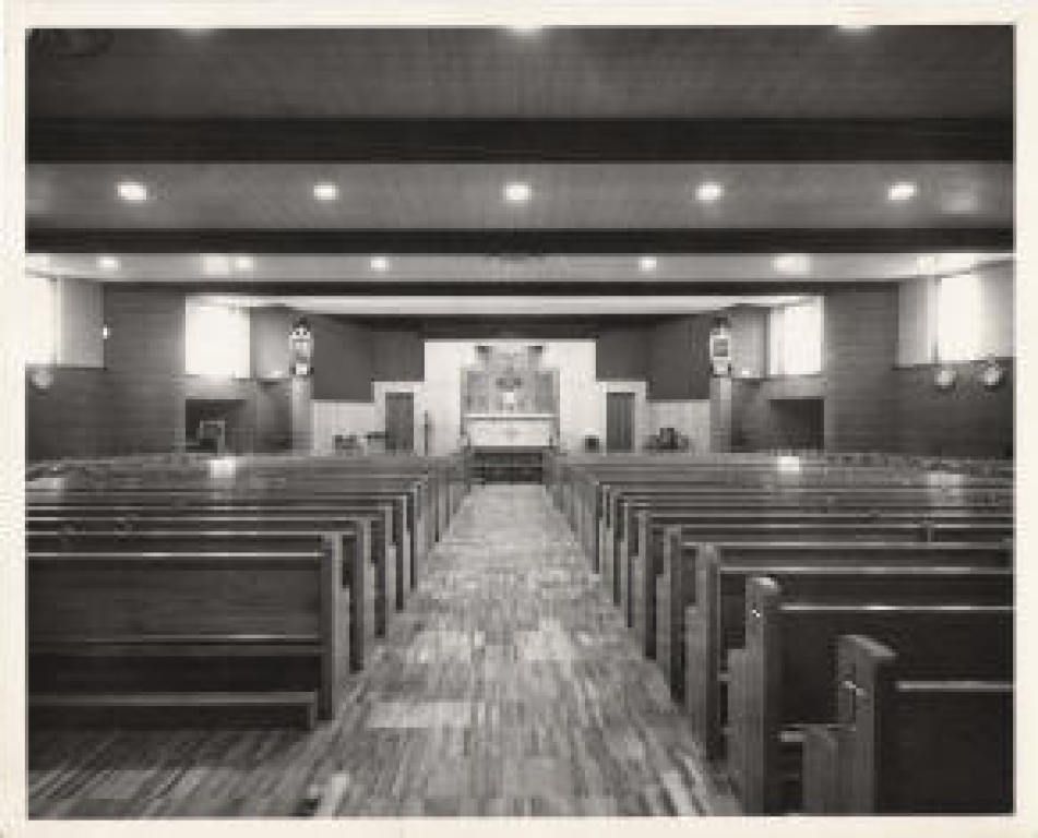 En 1975, durante nuestro Jubileo de Oro, se completó la fase final de construcción de la iglesia. Se añadió un ala al corredor principal, que albergaba el Salón Nupcial, los Baños y el tan esperado punto focal del exterior de la iglesia: el Campanario.