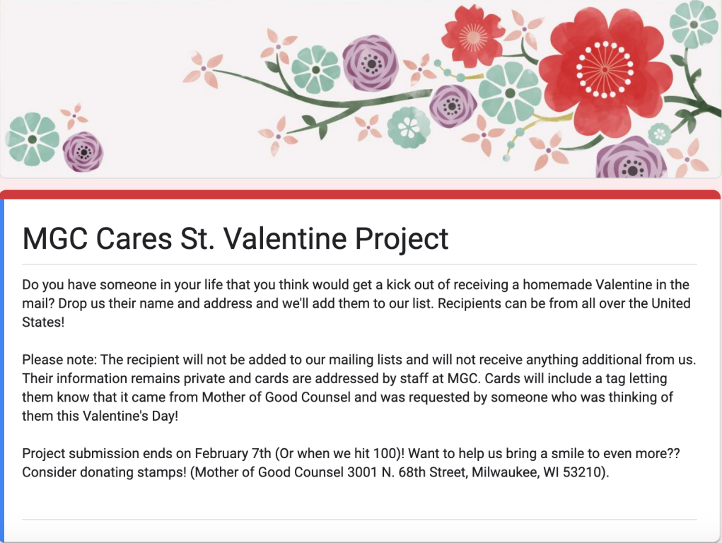 Click on the image above to add the informationfor those who would like to receive a Valentine.